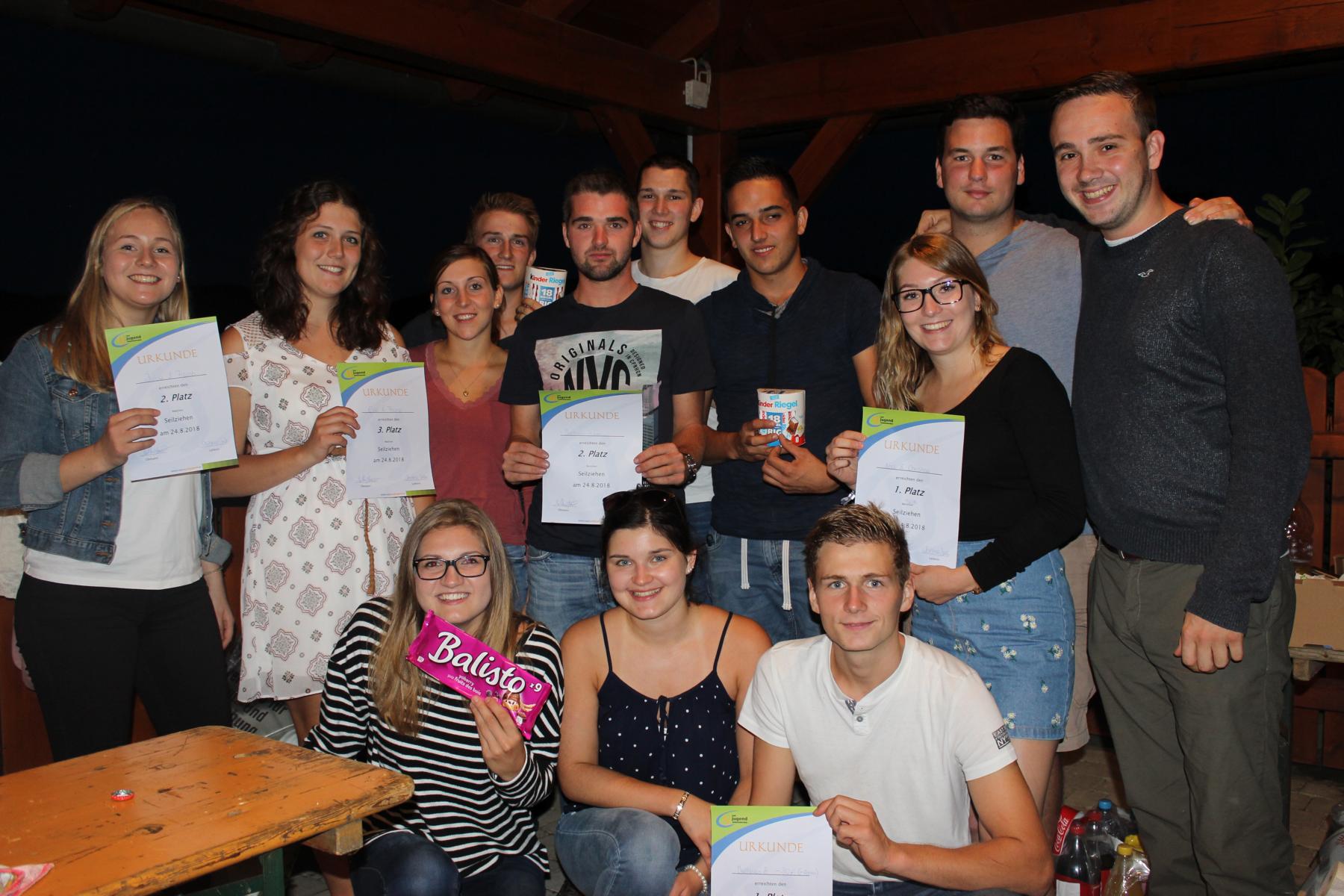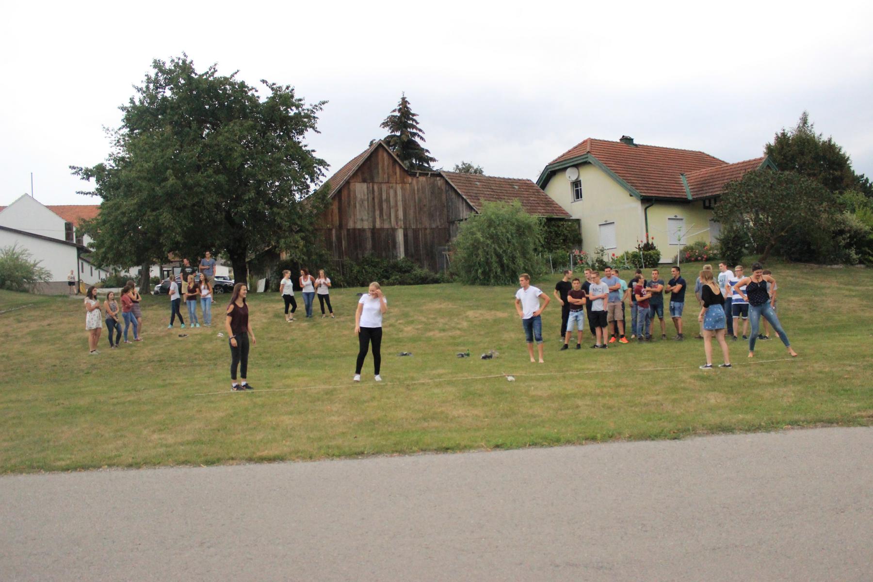 Am 24.August 2018 fand das Dankeschönessen vom Maitanz und eine Versammlung mit Seilziehen statt. Neue Termine wurden besprochen, 8 neue Mitglieder stellten sich vor und anschließend wurde in 2er-Teams um die Wette gezogen. Danach konnten wir gemütlich zusammensitzen, Kotletts essen und Spritzer, sowie Bier trinken. ;) Beim Seilziehen stellte sich heraus, wer das stärkste Team ist: Bei den Burschen erreichten Matthias H. und Florian (Ascher) den 1. Platz, Matthias W. und Leo den 2. Platz und Michael B. und Michael H. den 3. Platz Bei den Mädls erreichten Christina und Andrea den 1. Platz, Franziska W. und Julia den 2. Platz und Franziska R. und Eva den 3. Platz Wir freuen uns schon auf die nächste Versammlung :)