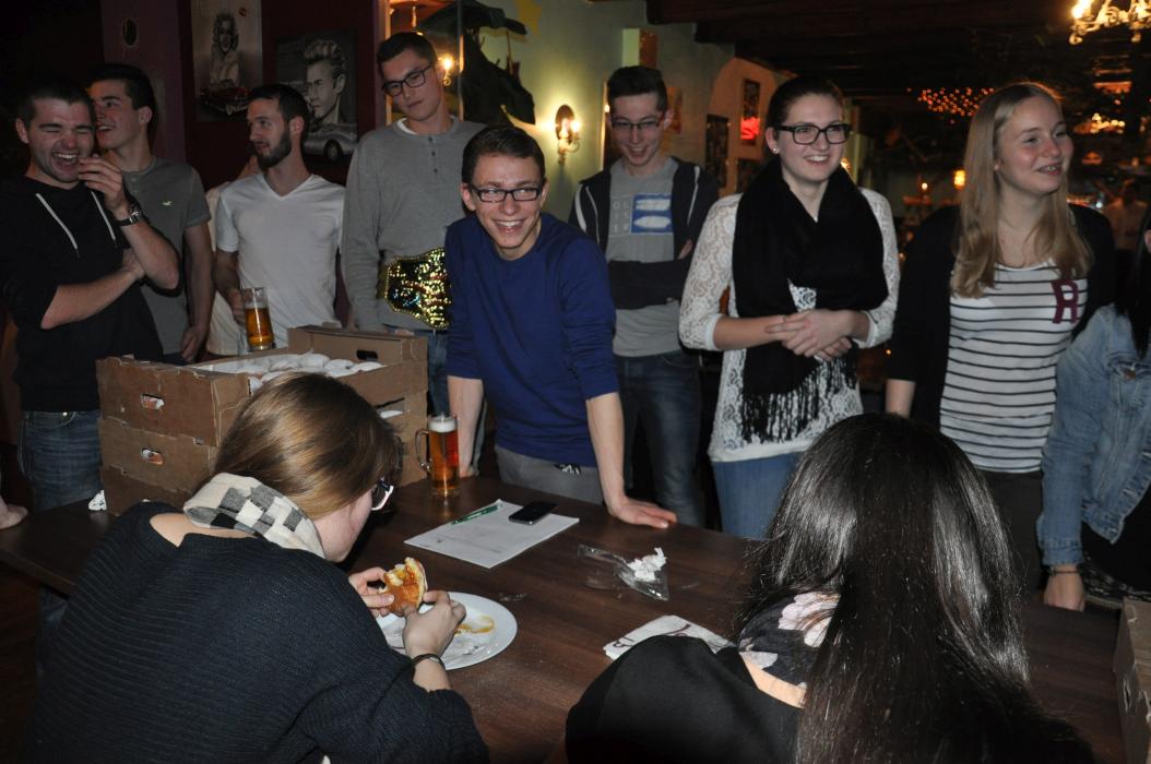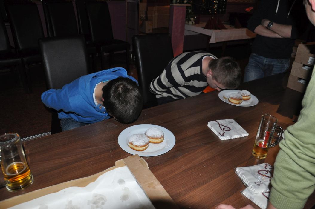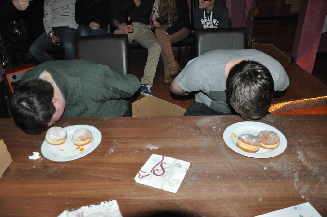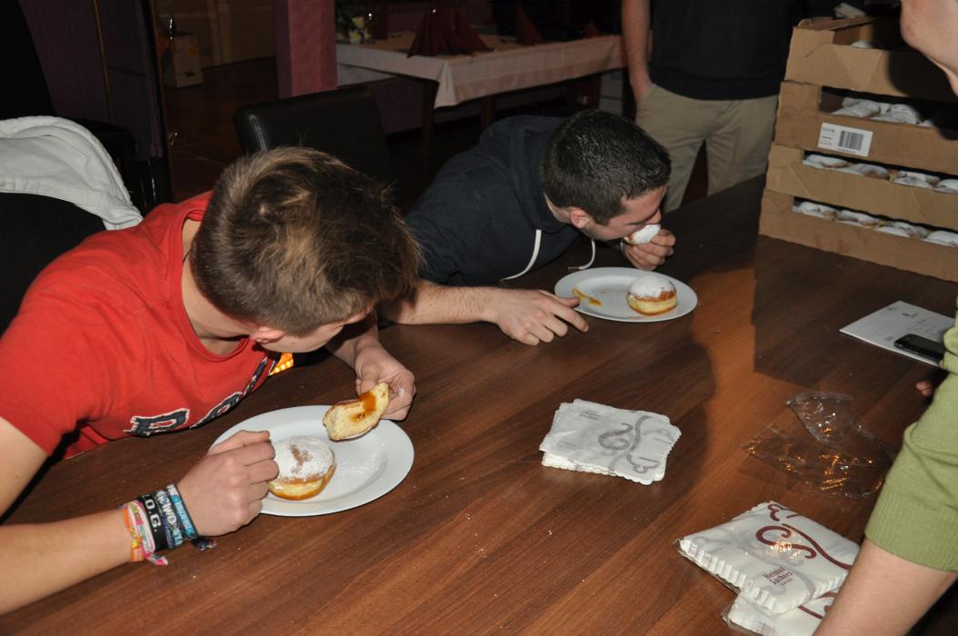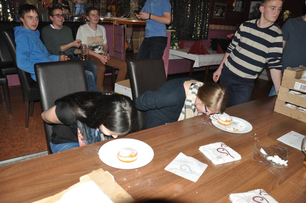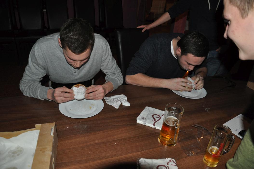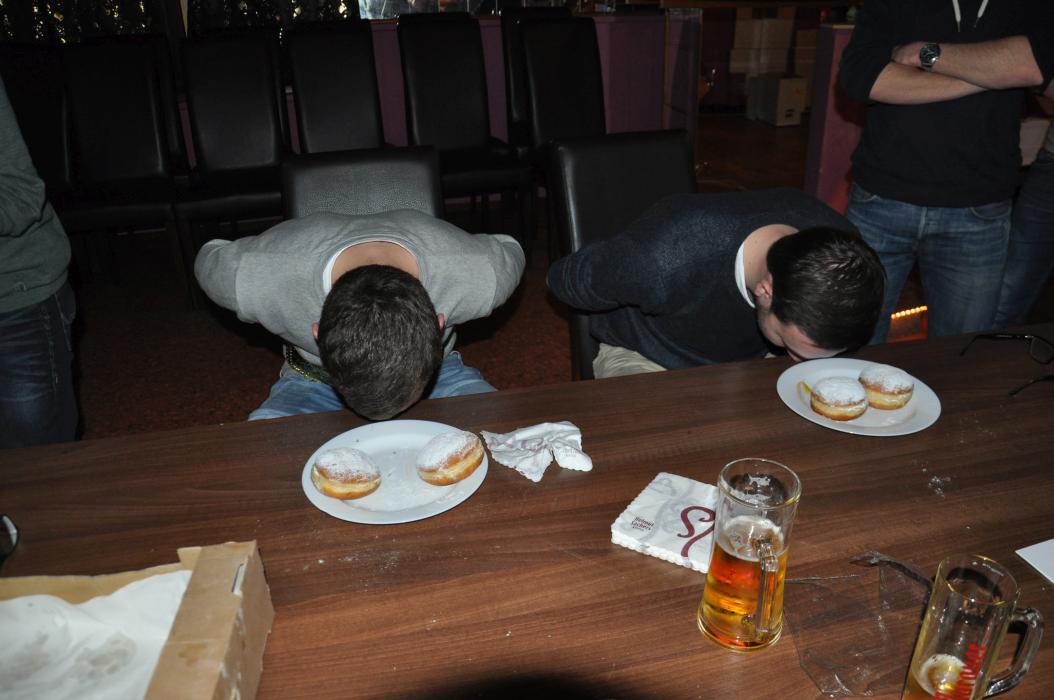 Versammlung mit Krapfenwettessen