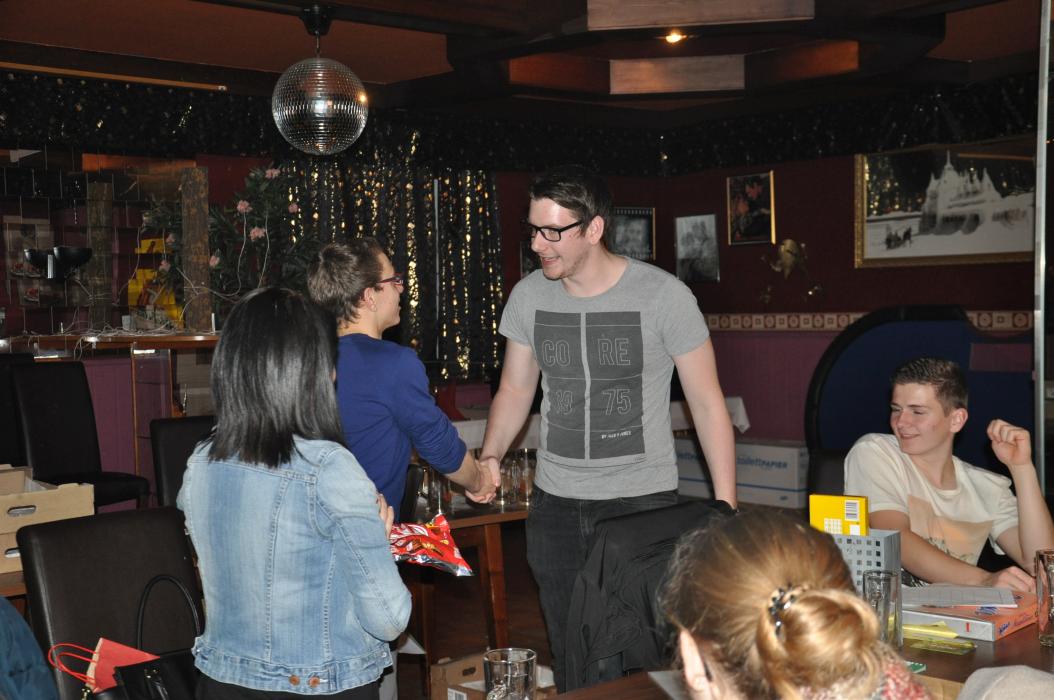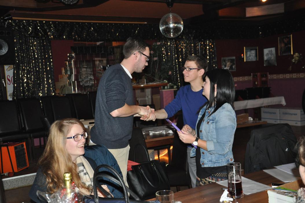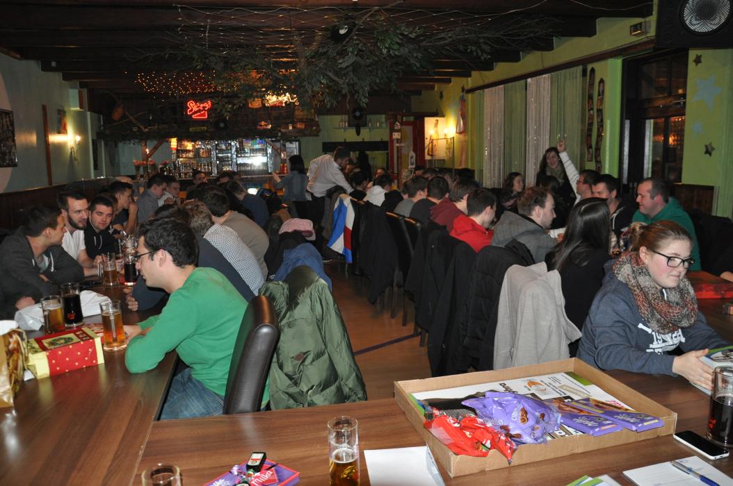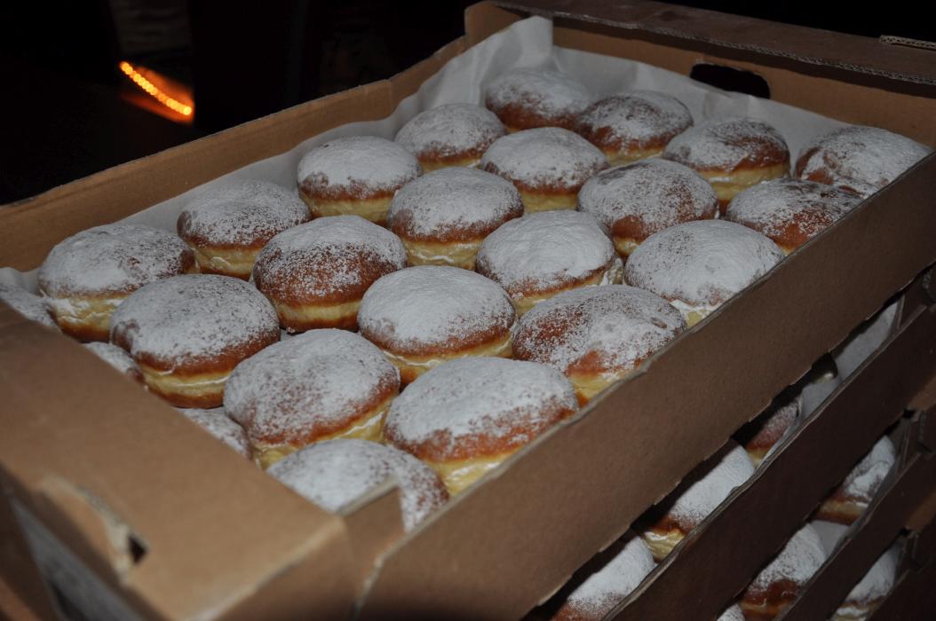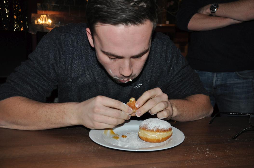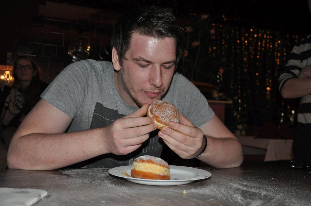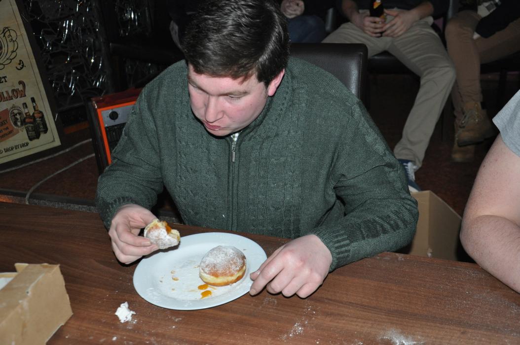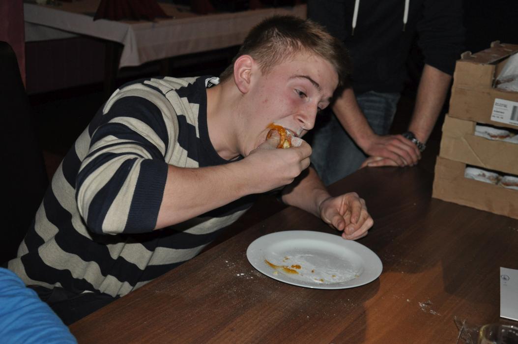 Versammlung mit Krapfenwettessen